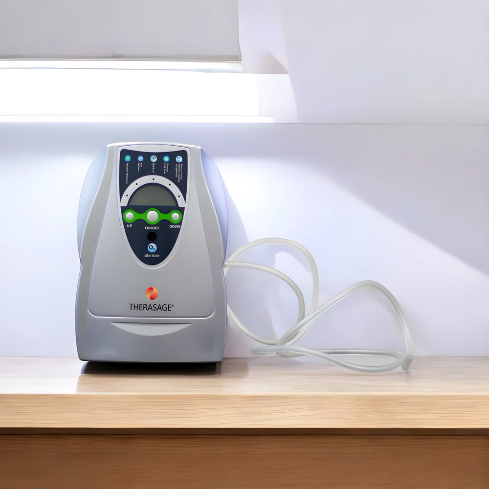 The TheraO3 Bubbler (Worldwide Voltage) delivers the same powerful oxygen-based sanitation and therapeutic benefits—now with universal voltage compatibility (110V–240V) for use across the globe. This unit is perfect for travelers, international customers, or anyone needing flexibility across different power standards. It comes equipped with a North American plug, so if you're outside the U.S., a simple plug adapter is all that’s needed—no voltage converter required. Enjoy Therasage's advanced ozone technology anywhere in the world.