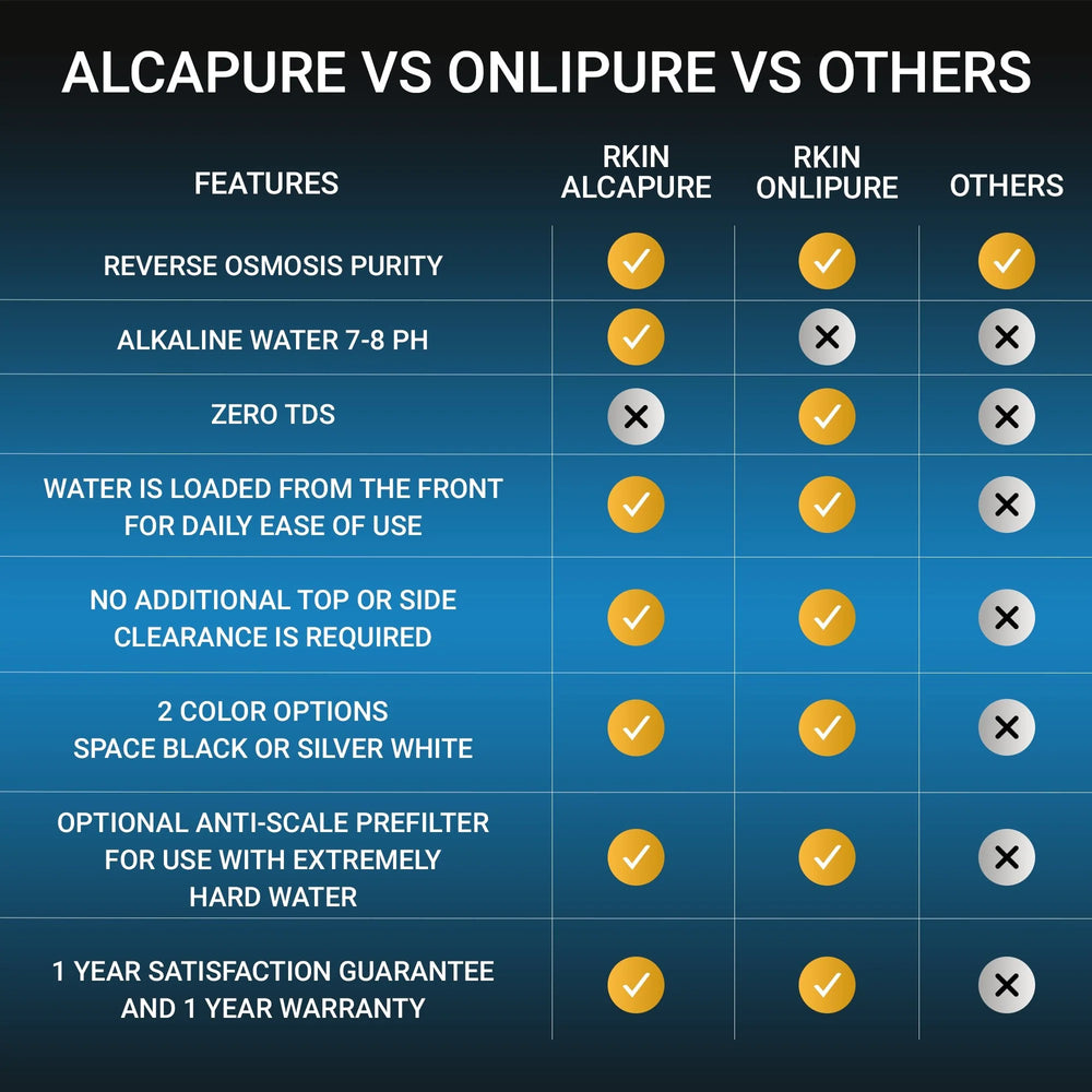AlcaPure Edition for Alkaline pH or OnliPure Edition for ZERO TDS.